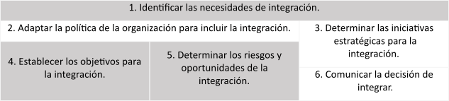 Como se mencionó anteriormente, el manual ha sugerido la integración como un proceso de cuatro etapas que se fraccionan a su vez en once subetapas a considerar si se pretende realizar una correcta metodología de integración:
