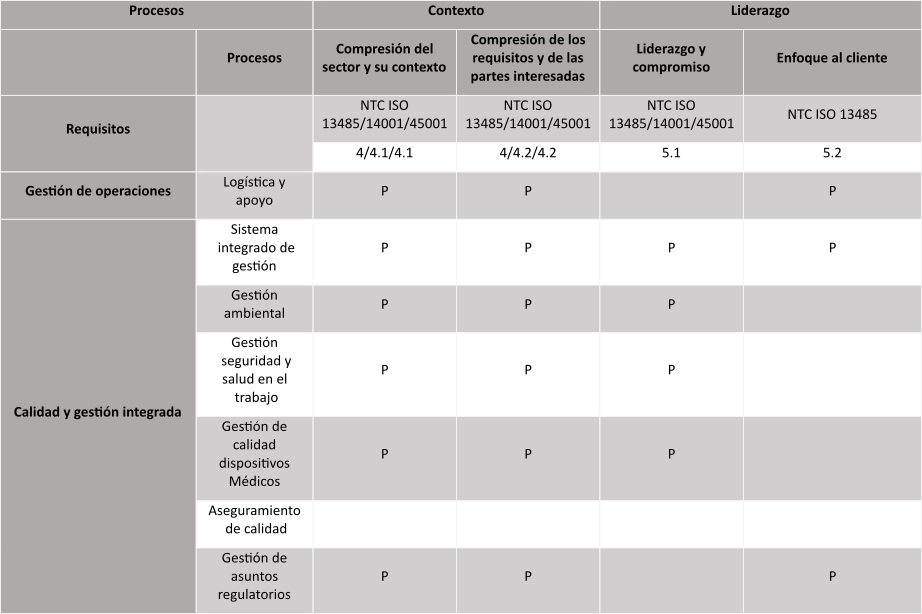 Se evidencia que, aunque la NTC ISO 13485:2016 no cuenta con una estructura de alto nivel definida, como en la NTC ISO 14001:2015 y NTC ISO 45001:2018, se pudo realizar la integración sin complicaciones, puesto que la norma relacionada a dispositivos médicos se encuentra asociada homólogamente a la norma NTC ISO 9001:2015.