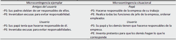 En la Tabla 2 se representa el análisis correspondiente a este paso. Cabe señalar que, dada la naturaleza del problema bajo análisis, se consideró que el criterio de valor que contextualiza la microcontingencia bajo análisis, y que permite valorar como problemático el comportamiento del usuario, tiene que ver con ser responsable en situaciones laborales.