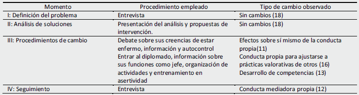 Llegados a este punto, se procedió a planear y aplicar la intervención para lo cual se eligieron los procedimientos de cambio atendiendo criterios funcionales (Díaz-González, Landa, Rodríguez y Sánchez, 1986; Rodríguez, 2002).