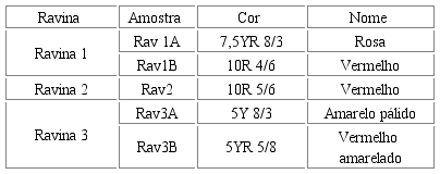 Assim, ao serem coletadas, as amostras de solo das ravinas, em estado úmido, foram classificadas de acordo com a cor, indicado no Quadro 1, sendo possível notar a predominância de solo vermelho.