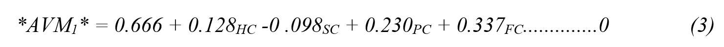 Therefore, from the estimated post-colonial AVM model above, the impact AVM on the livelihood capitals of the rice farmers can be predicted from the above regression. The post-colonial AVM capitals are positively related to the livelihood capitals of the rice farmers in Abia State. It implies that as much as there are models like AVM, the general livelihood capitals of the rice farmers would continue to improve. The more AVM services such as skill training, provision of subsidized fertilizers, community engagement programmes, to mention a few, the farmers would continue to improve their farm productivities, attain high yield and earn higher income as well as achieve general sustainability of the livelihood capitals. This would ensure that Nigeria is food sufficient, stable and domestically confident.