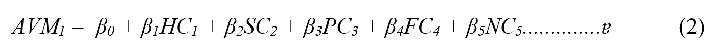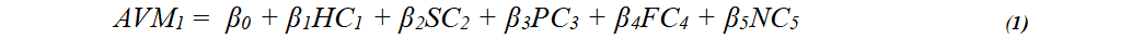 Since the natural capital is negatively associated to AVM, equation (1) is therefore remodeled as