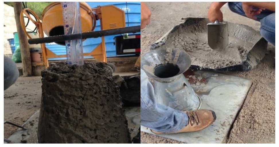 A seguir temos na Figura 2 uma mistura que não atendeu a essa especificação e obteve um abatimento em torno de 20 cm:
