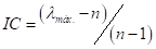 Em que IR é o Índice de Consistência Randômico para uma matriz reciproca de ordem n, elaborada randomicamente com elementos não-negativos. Saaty (1977) estabelece que a confiabilidade dos julgamentos pode ser atestada se a condição