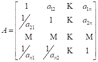 De acordo com Ishizaka e Labib (2011), uma matriz de julgamentos genérica A pode ser obtida da seguinte forma (Equação 1):