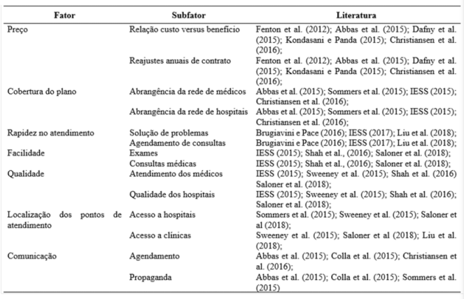 Por outro lado, Saloner et al. (2018), a cobertura do plano está relacionada à área de abrangência, desde as redes de hospitais até a equipe médica de atendimento. Com isso, de acordo com estes autores, os profissionais da área que são os principais prestadores de serviço do plano de saúde, são determinantes, em diversas vezes, na escolha de um plano de saúde.
