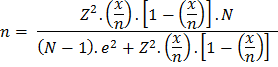 Para que definir o número de artigos avaliados dentre os resultantes, o tamanho da amostra foi calculado a partir da Equação 1 e utilizado como coeficiente de confiança. Esse cálculo se faz necessário para garantir a representatividade dos dados coletados e legitimidade da pesquisa (BARBETTA, 2007).