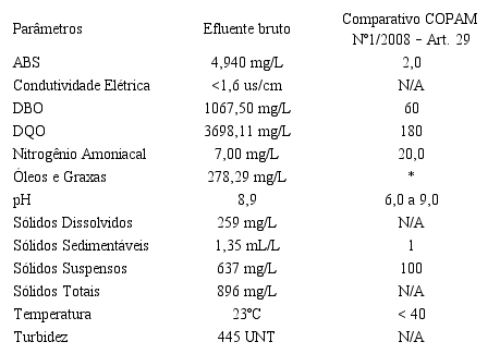 Os resultados das análises em relação aos padrões de lançamento em corpos hídricos são apresentados na Tabela 2.