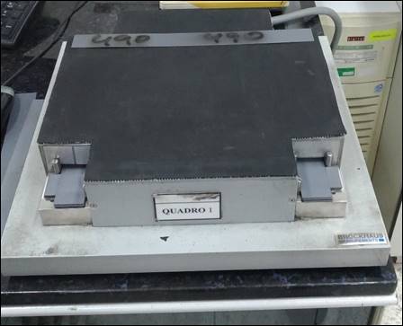 As amostras de dimensões padrão, foram empilhadas no aparelho blockhouse, que realiza o teste Epstein segue na Figura 11.