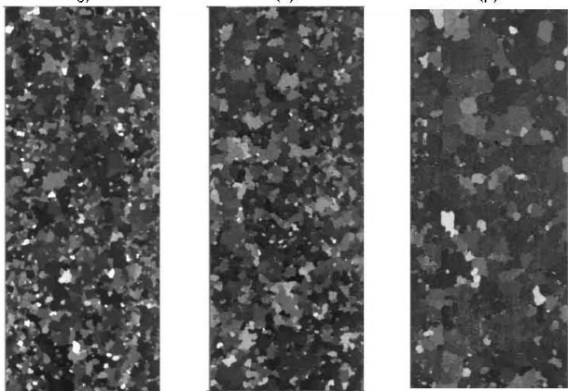 Esses grãos alongados podem ser observados como adquirindo a orientação preferencial. Desenvolvem assim após esse processo uma orientação cristalográfica que origina texturas secundárias e primárias que após o processo de recozimento em caixa mudando sua morfologia tende a se reorganizar e dar forma a textura de Goss que é a textura chave para explicitar as propriedades magnéticas, esta reorganização pode ser observada na Figura 5.