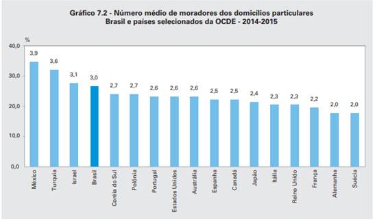 Essa expansão é percebida com maiores valores na Região Sudeste, com adição de 5,7 milhões de domicílios particulares. Porém, trazendo também um destaque a Região Norte, com um crescimento bem acelerado, onde em apenas uma década saltou 36,5% de seus domicílios. O IBGE ainda compara esse ritmo de crescimento de domicílios que foi bem maior do que o crescimento da população, ou seja, representando uma redução da média de moradores por domicílio. Seus dados divulgam que a média de moradores por domicílio particular era de 3,5, em 2005, reduzindo-se para 3,0 em 2015. A Figura 2 demonstra bem esse indicador, representando o número médio de moradores dos domicílios particulares, pode-se perceber uma significativa variação regional, mais elevado nas Regiões Norte e Nordeste, e mais baixo nas Regiões Sul e Sudeste. Esse indicador também registra significativa variação regional, sendo mais elevado nas Regiões Norte e Nordeste, e mais baixo nas Regiões Sul e Sudeste. Entre as Unidades da Federação, os pontos extremos são os Estados do Amazonas, com uma média de 3,8 moradores por domicílio particular, e do Rio Grande do Sul, com 2,7.