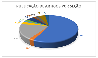 Olhando a tabela anterior vemos que as seções da revista QNEsc. Em que mais houve publicações foram Experimentação em Ensino de Química (EEQ) com 48 publicações e Relatos de Sala de Aula com 15 publicações.