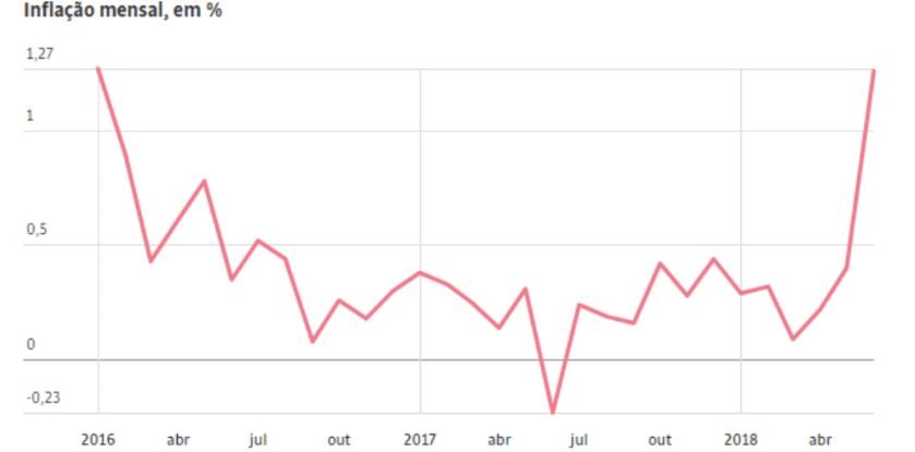 Em relação a inflação, o país também sofreu uma alta. Nesse período de greve houve o desabastecimento de alimentos e combustíveis, pressionando assim os preços no período. A Figura 2 a seguir demonstra o valor da inflação no decorrer dos meses.