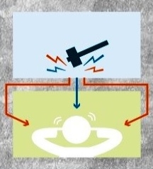 Na transmissão de ruídos de impacto temos uma situação similar a transmissão de ruídos aéreos, todavia aqui os elementos de condução destes ruídos acontecem apenas por 5 vias, sendo uma a transmissão direta do piso, e as demais de elementos laterais (Akkerman, 2013).