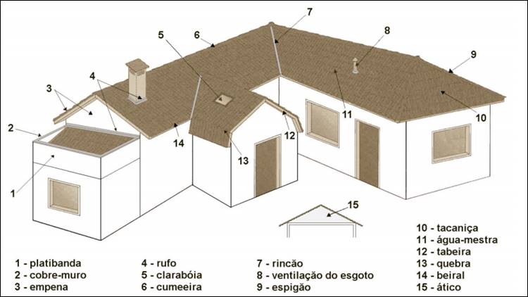 Sistema de cobertura (SC): Conjunto de elementos/componentes, dispostos no topo da construção, com as funções de assegurar estanqueidade às águas pluviais e salubridade, proteger demais sistemas da edificação habitacional ou elementos e componentes da deterioração por agentes naturais, e contribuir positivamente para o conforto termo acústico da edificação habitacional. (NBR 15.575:2013-5, p. 8).