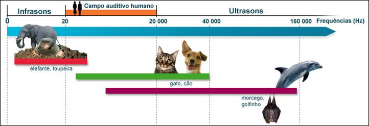 Frequência abaixo de 20Hz são considerados infrassons e acima de 20.000Hz são considerados ultrassom. Com relação a estas faixas extremas de frequências é importante salientar que menos não sendo perceptíveis aos ouvidos humanos, podem causar perturbação a outros animais que tem capacidade auditiva maior dos quais podemos destacar os elefantes, toupeiras, cachorros, gatos, morcegos e golfinhos.