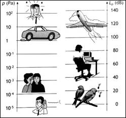 . Desta relação podemos perceber que se utilizarmos a pressão em pascoal estaria em uma magnitude de sete ordens (de 10-5 a 102 Pa), todavia se utilizar a pressão sonora em decibéis tem-se praticamente toda a faixa de pressão sonora em duas ordens de magnitude (de 0 a 140 dB).