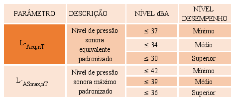 Usando a mesma metodologia dos demais sistemas a norma estabelece os valores de pressão sonora minimamente aceitáveis como demonstra tabela abaixo: