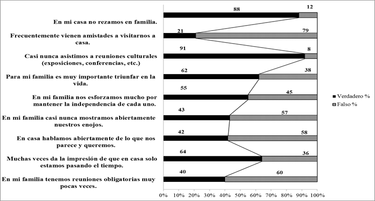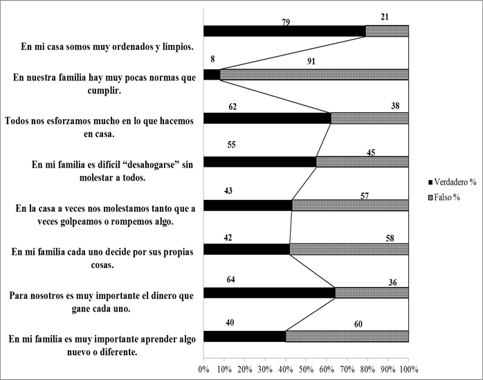 Se coincide con Moos y otros (1995) y Zavala (2001) en que el grado de comunicación y el control que se desprende de estos resultados parecieran apuntalar un estado de bienestar entre los miembros de la familia, lo que se manifiesta en la intención de procurar ser los mejores en cualquier actividad que emprendan (73%).