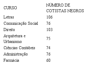 A citação acima ratifica que o sistema de cotas está progredindo e assumindo lugar também na pós-graduação, com programas pioneiros em termos de implementação de política de ação afirmativa no tocante à democratização do acesso ao ensino superior strictu sensu.