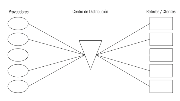 El diseño de red de distribución dentro de los almacenes se maneja como sigue (Figura 3):