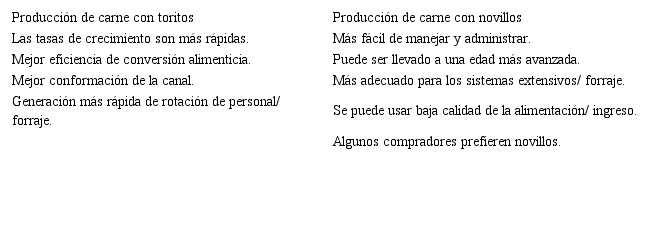 Los toritos producen carnes más magras con un alto rendimiento de carne comestible en un tiempo más corto, en comparación con los novillos (Tabla 1). Los toritos también son capaces de convertir el alimento de carne magra de manera más eficiente, lo que les permite alcanzar tasas de crecimiento más altas que los novillos (EBLEX, 2014, p.42).