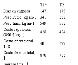 Al observar los resultados de la Tabla 7, de un estudio realizado en INIA Carillanca, Temuco, Chile, por Catrileo y cols. (2014), donde compara una engorda de toritos alimentados a grano v/s forraje, arrojó que los alimentados con grano finalizaron antes que los con forraje, obteniendo pesos cercanos a los con forraje y en menor tiempo. Respecto al margen bruto, el mayor valor lo presentan los alimentados con forraje; sin embargo, hay una diferencia no amplia del margen bruto entre ambos tipos de alimentación de solo 17 US$, y una diferencia en costo operacional de 124 US$, lo que indica que el implementar grano genera costos operacionales mayores que el implementar solo forraje a la alimentación, pero pesos óptimos en menor tiempo.