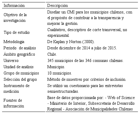 Una vez definido el objetivo de estudio, se procedió a la búsqueda y análisis en profundidad de la información referente a los aspectos normativos, estratégicos y del funcionamiento de los actuales instrumentos de planificación y control de gestión municipal. Con dicha información se elaboró un análisis comparativo para identificar aspectos relevantes a considerar en el diseño de un CMI para la administración municipal chilena.