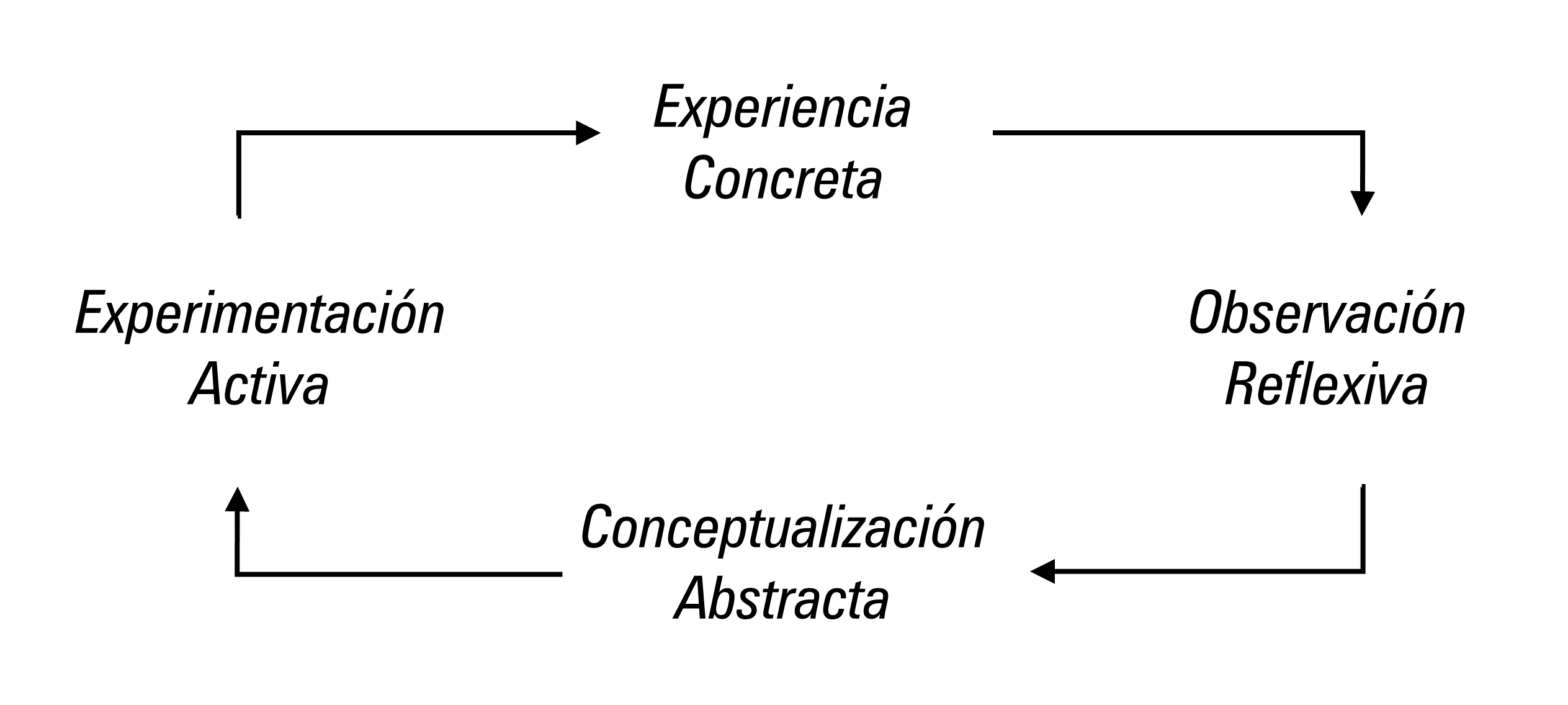 El modelo plantea un ciclo de aprendizaje que define cuatro tipos de aprendizaje, estos se producen en dos dimensiones estructurales opuestas: