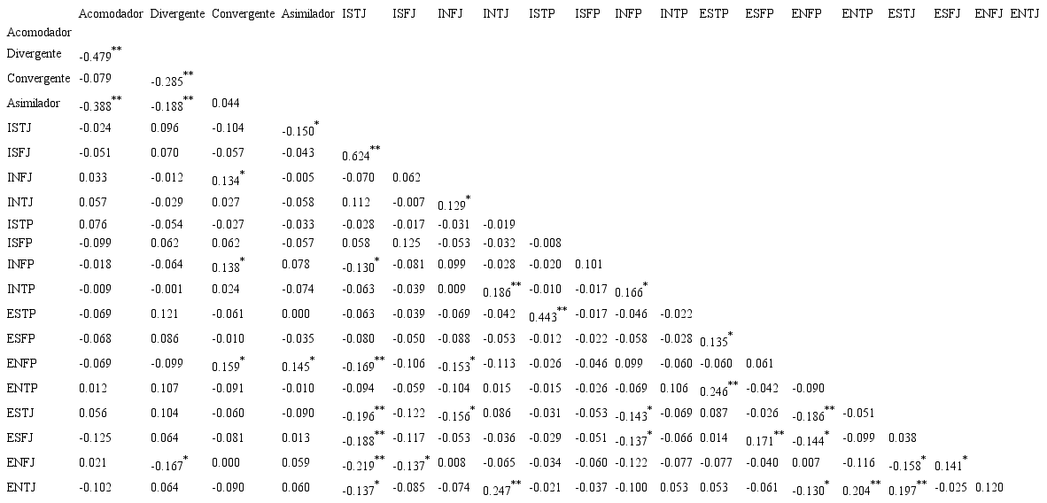 Correlación entre tipos de personalidad y estilos de aprendizaje