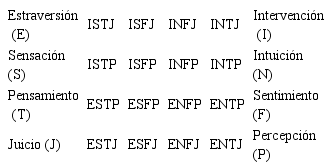 Hernández y Hervás (2005), señalan que Myers y Briggs propusieron 16 tipos psicológicos que son el producto de posibles combinaciones de preferencias relacionadas a las funciones: