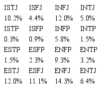A su vez, la misma autora también estudió la relación que existe entre los tipos de personalidad y la elección del ambiente laboral (Järlström, 2005). En esta investigación se aplicó el MBTI en la misma Escuela de Negocios, siendo los tipos psicológicos más frecuentes de los estudiantes: ESTJ (15%), ISTJ (12%), y ENTJ (13%).