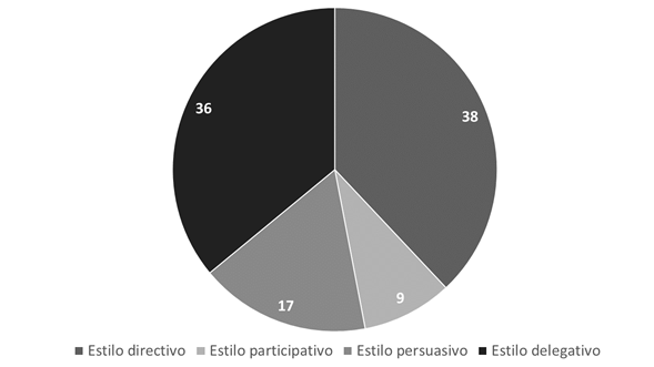 Como resultado del análisis de los datos recopilados en los centros de atención primaria en salud de la ciudad de Chillán, Chile (Figura 1), se logra evidenciar que el estilo de liderazgo predominante en los directores de los consultorios es el de tipo Directivo con 38%, seguido del estilo Participativo con 36%. También se distingue que el estilo de liderazgo que menos predomina según la percepción de los funcionarios de los consultorios, en los directores de los mismos, es el de tipo Delegativo con 9%.