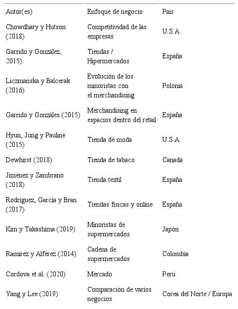 En tiempos de posmodernidad, Chowdhary y Hutson (2018) mencionan que la competitividad de las empresas es sumamente mayor y, sin duda, estas se están capacitando en la aplicación de técnicas de comercialización, en las cuales los minoristas están tratando de diferenciarse de los distintos puntos de venta, en su visualización de tienda, presentación de productos y en la seducción para atraer a clientes nuevos (Ver Tabla 2).