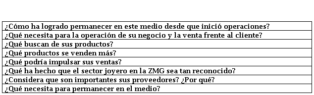 Otras observaciones de los participantes son: (a) la industria es de gran rivalidad, y ocupar un lugar en ella requiere especial dedicación y perseverancia; (b) para crecer como negocio en la industria joyera jalisciense hay que buscar nuevos mercados en el extranjero, como por ejemplo, en Sudamérica y (c) la industria jalisciense goza de notable reconocimiento por la producción que realiza y la cantidad de centros joyeros, porque en Latinoamérica no hay una aglomeración de joyerías como la hay en Guadalajara, ni siquiera en los Estados Unidos, aunado a que desde hace más de una década se exporta recurrentemente a países de Centroamérica, Asia y Europa.
