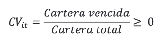representa la cantidad de cartera vencida en términos de cartera total de créditos otorgado por banco “i”,