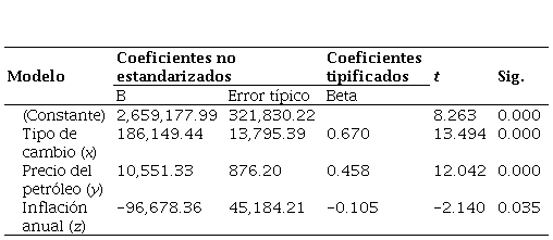Para determinar qué variables macroeconómicas influyen en la demanda turística, se planteó el modelo de regresión múltiple. Se trabajó con datos mensuales de enero 2010 a diciembre 2016, con fin de establecer la dependencia del número de cuartos-noche ocupados (demanda turística), con el tipo de cambio, el precio del petróleo y la inflación anual.