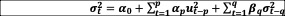 Sin embargo, Bollerslev (1986) señala que los modelos GARCH permiten modelar con mayor precisión la volatilidad de activos financieros, ya que el problema asociado al modelo ARCH es que la estimación posee estallidos de volatilidad en vez de una volatilidad persistente, que es una característica de las series financieras. Por tanto, siguiendo a Bala y Takimoto (2017), se utiliza un modelo GARCH para modelar con mayor precisión la volatilidad de activos financieros. Siguiendo a Bollerslev (1986), el modelo permite que la varianza condicional de la variable dependa de rezagos anteriores. La estructura de la varianza condicional depende del cuadrado de los errores retrasados en . periodos y las varianzas condicionales retrasadas en . periodos.