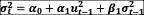 Para modelar la volatilidad del precio de las acciones a través del tiempo, se utiliza el modelo GARCH(1,1):