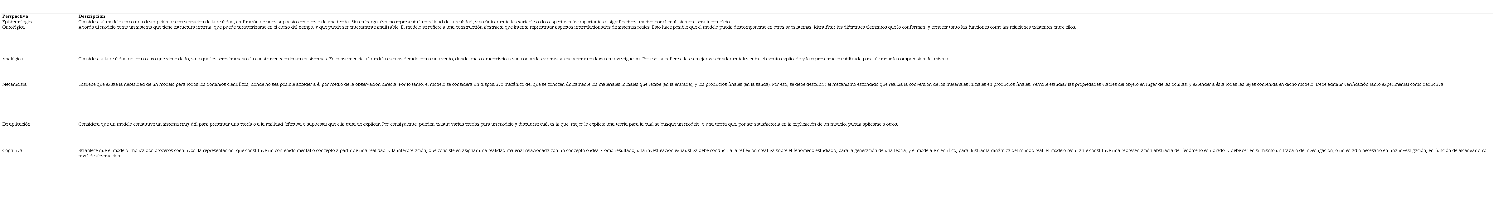 De Arias (2018), Bribiesca y Merino (2008), Gil y Revilla (2018), Sáez y Padrón (2013) y Talavera (2017), se tomaron en cuenta las seis perspectivas de abordaje, al igual que las características propuestas por ellos para los modelos. De esta forma, dicho modelo constituye: