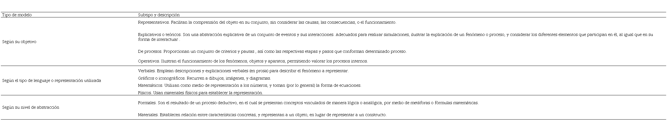 Los modelos pueden clasificarse de distintas formas, sin embargo, para esta investigación se tomaron en cuenta las categorías propuestas por Hurtado (2010) y Gil y Revilla (2018), descritas en la Tabla 2.