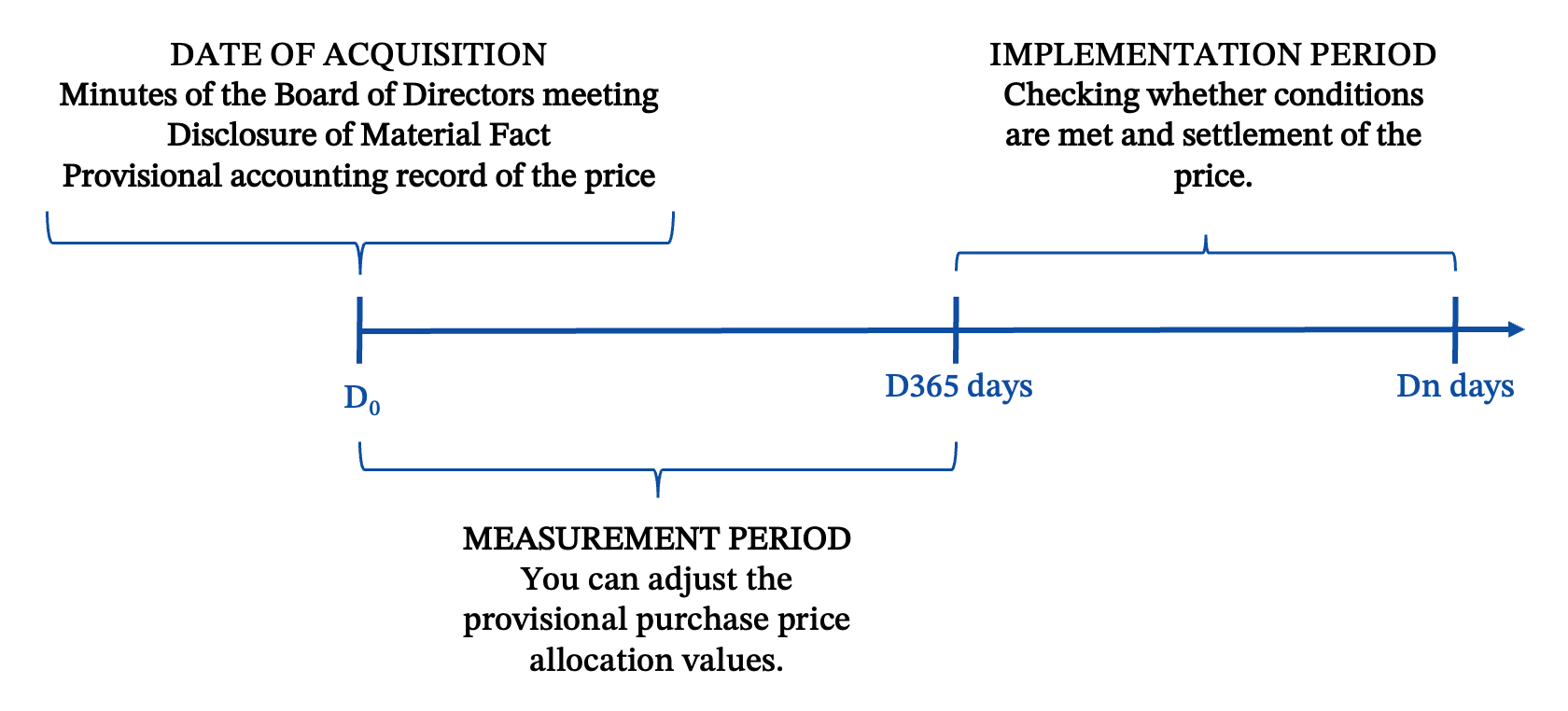 1. Companies must promote the initial accounting of a business combination and, if this is incomplete at the end of the reporting period in which the combination occurs, the acquirer must report the provisional values for the items whose accounting is incomplete in their financial statements. The period for measuring and recognizing the final transaction amount is one year.