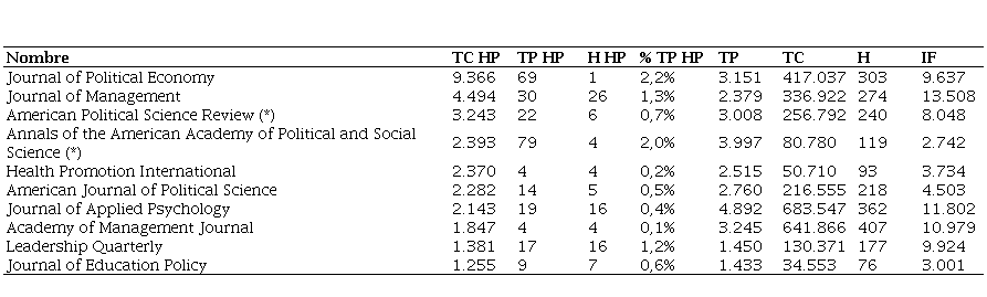 El resumen Top 10 de las revistas más influyentes en la investigación de la habilidad política se muestra en la Tabla 3.