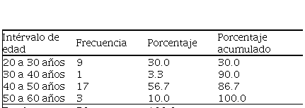 Se observó la frecuencia con relación a la edad del personal administrativo. En primer lugar, el 30% representa a las edades entre 20 y 30 años, el 3% representa las edades entre 30 y 40 años, mientras que el 57% está representado por las edades entre 40 y 50 años. Por último, el 10% corresponde a las edades entre 50 y 60 años.