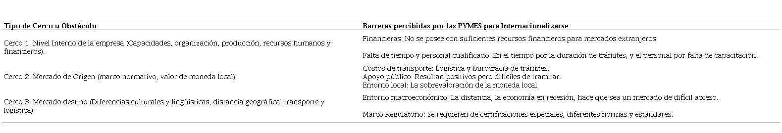 A continuación, la Tabla 1 muestra un modelo de obstáculos a los que se enfrentan las empresas, en específico las PYMES latinoamericanas en su proceso por internacionalizarse.