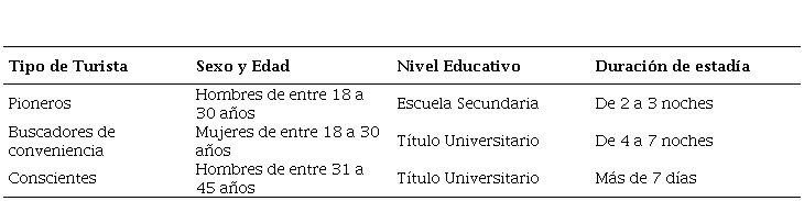 Ante lo mencionado, Tsourgiannis y Valsamidis (2019) plantean la división de este tipo de turistas en 3 tipos, a saber: pioneros, buscadores de conveniencia y conscientes. Se presenta en la Tabla 3 para su comprensión.