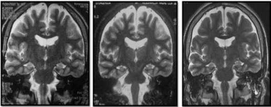 With respect to neuroimaging, the variations observed in the MRI range between normal findings and different degrees of atrophy and hyperintensities in the temporal lobe, mainly in the hippocampal region 12,25,26, as well as in the insula and basal ganglia 11, perhaps secondary to prolonged neuronal activation 4.