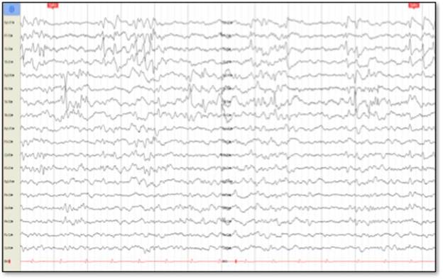 After the initial symptoms resolved, the patient developed a focal drug-resistant epilepsy, with recurrent status epilepticus. Currently, after a 12-year follow-up and treatment with oxcarbazepine, phenobarbital, valproic acid, topiramate, levetiracetam and clobazam in different associations and at maximum tolerated doses, the patient presented with focal ictal frequency of 2 to 3 events per week and altered consciousness. Many of these episodes were associated with bradycardia, decline in oxygen saturation and a monthly event with tonic-clonic generalization, as well as moderate cognitive deficit.