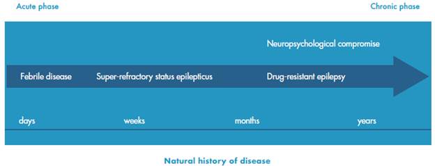 Conclusión: Es importante considerar esta etiología en estado epiléptico superrefractario para utilizar de forma temprana diferentes estrategias terapéuticas, como la dieta cetogénica, que permitan, por un lado, controlar su condición crítica y las crisis epilépticas a largo plazo y, por el otro, mejorar el pronóstico cognitivo, logrando así un impacto en la calidad de vida.
